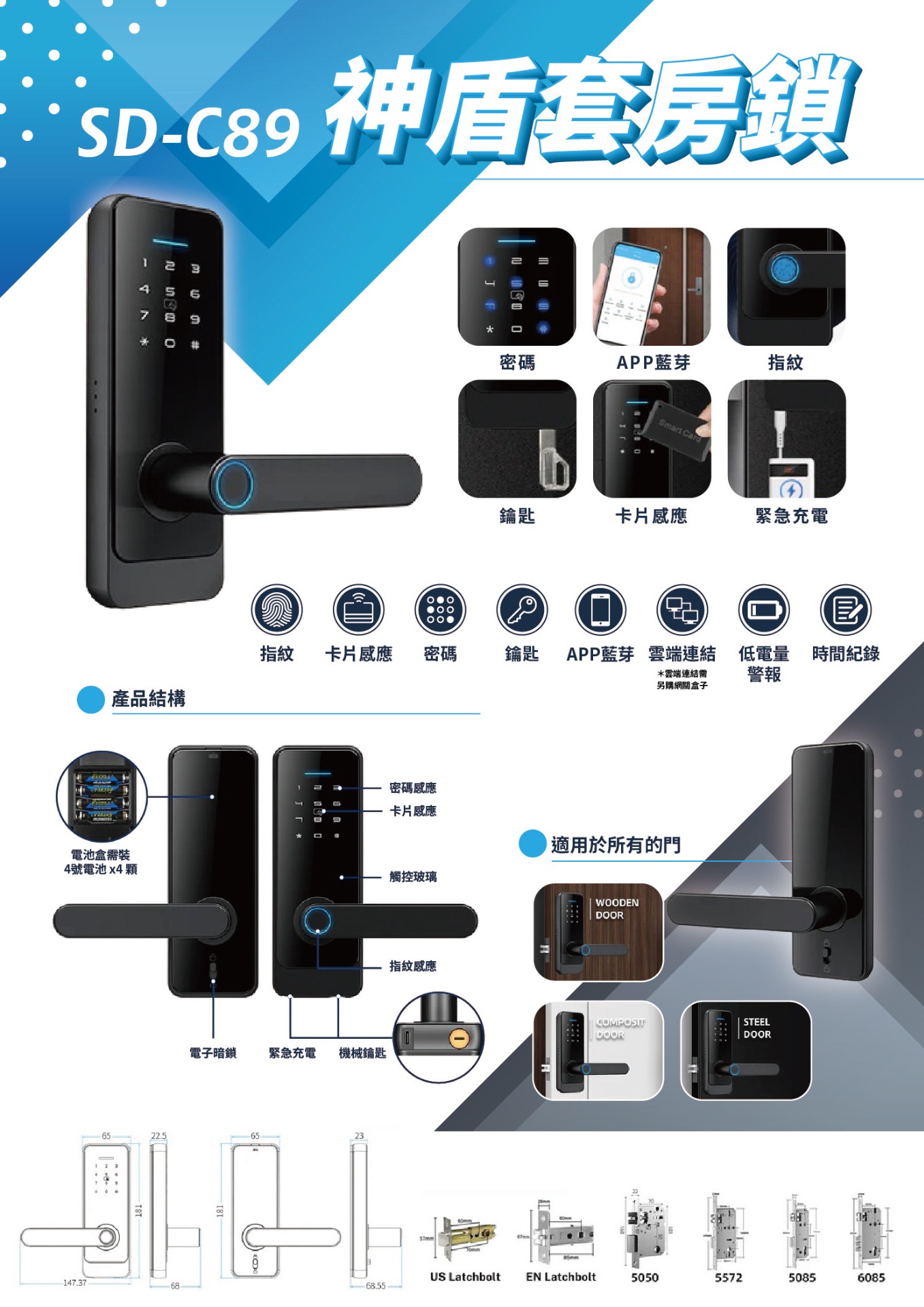 神盾 套房鎖 型號:SD-C89
