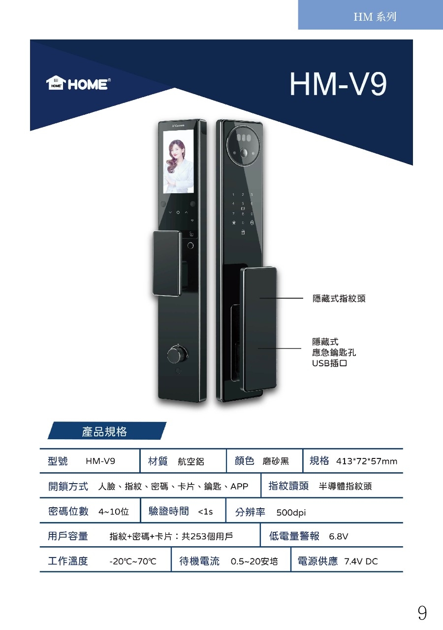 安住 人臉辨識電子鎖 防火證明 HM-V9