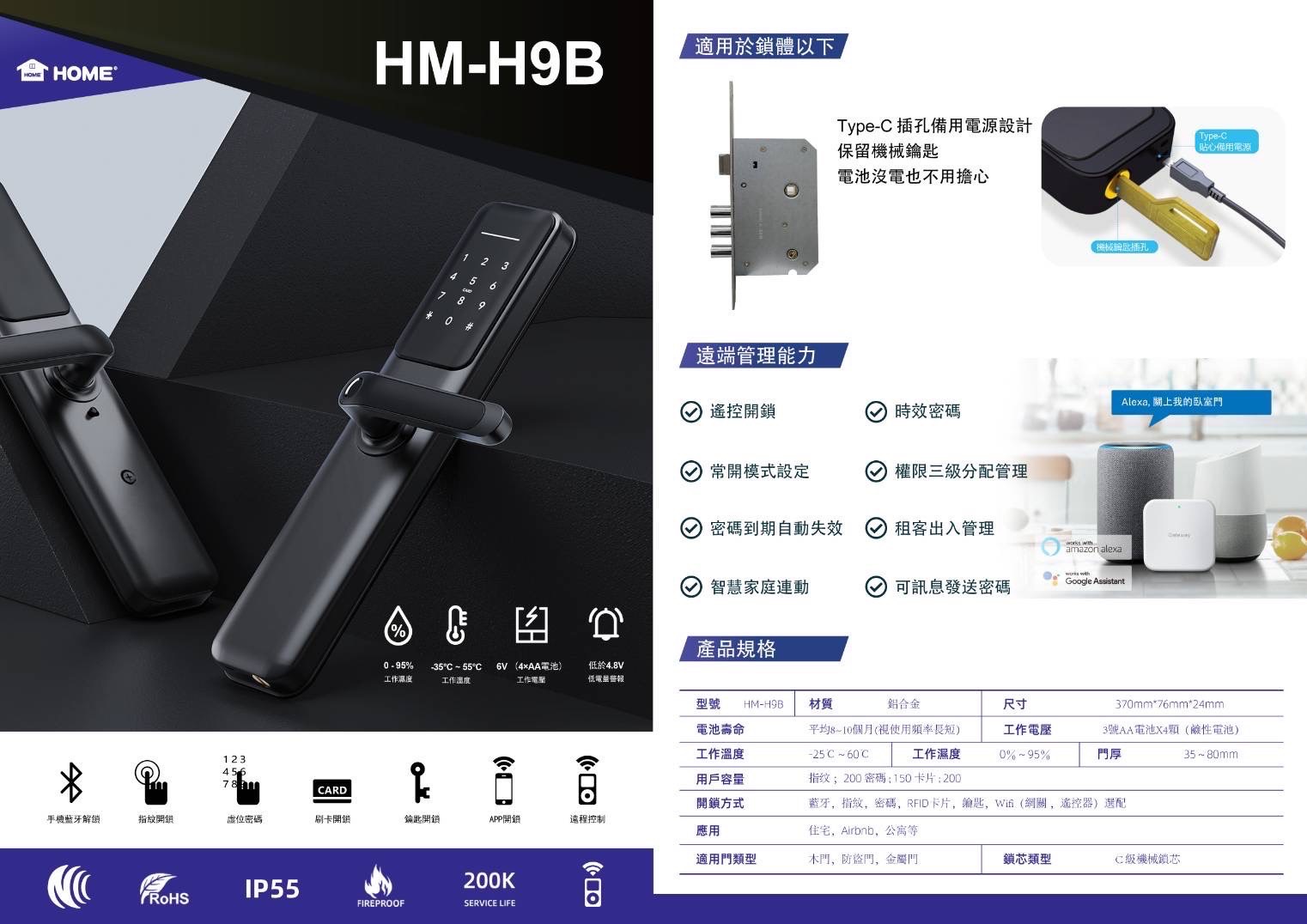 安住 五合一智慧電子鎖 HM-H3B