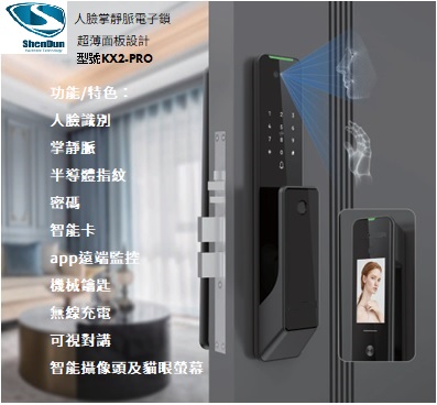 神盾 防水IP65 人臉掌靜脈電子鎖 超薄面板設計 型號KX2-PRO